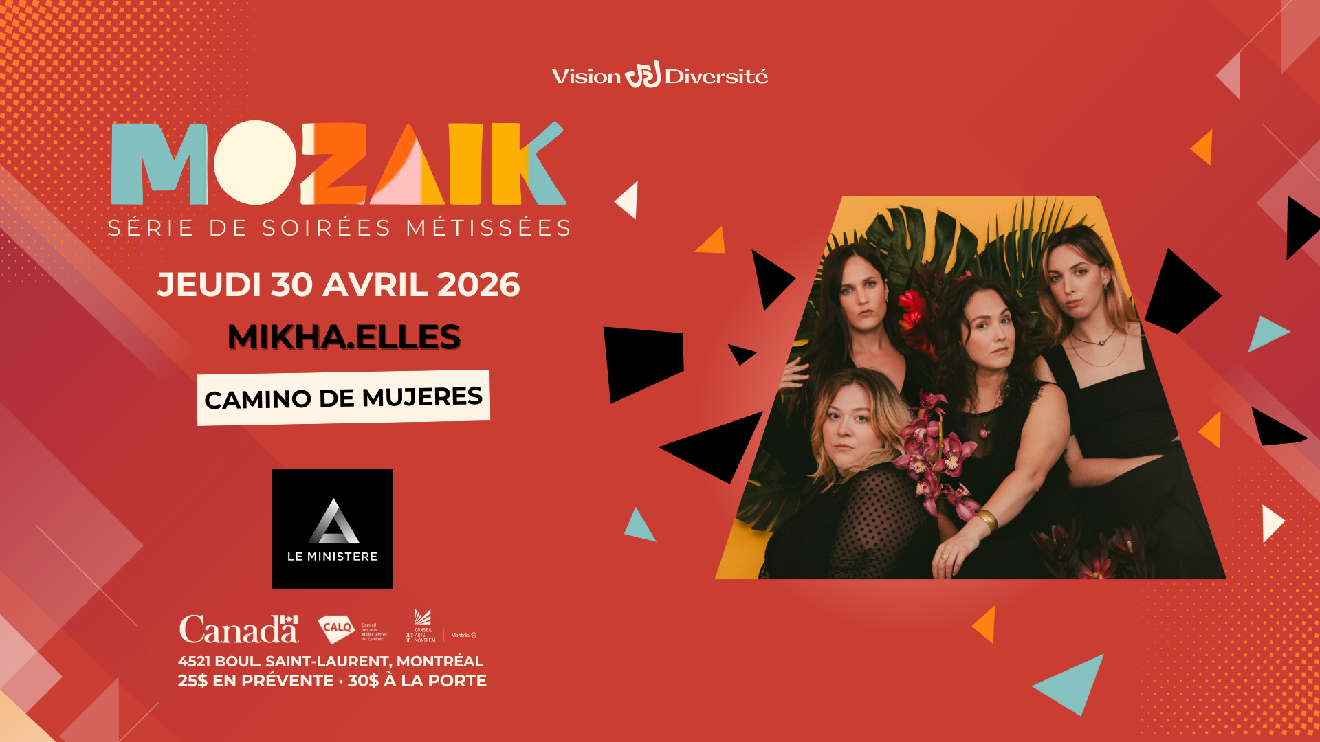 Camino de mujeres, ou encore Chemin des femmes, est un spectacle qui plonge les auditeurs dans l’univers métissé de Mikhaëlle Salazar et de son groupe Mikha.elles créé en 2020. Quatre voix uniques, soit celles de Marie-Neiges Harvey, Carmelle Gauvin, Judith Little-Daudelin et Mikhaëlle elle-même, convergeant vers une seule et même expression vocale, explorant un répertoire aux rythmes latins, chanté en espagnol et en français. Elles sont accompagnées aux percussions par la talentueuse Lara Klaus. Les origines métissées de Mikhaëlle, née d’une mère québécoise et d’un père chilien, sont une source d’inspiration pour les différents thèmes abordés tout au long de ce spectacle qui est issu de l’album portant le même nom et qui est sorti en novembre 2023. Cet album a reçu une nomination à l’adisq (2024) et aux Prix Opus (2025) dans la catégorie Album de l’année – Musiques du monde. Le groupe a également été nominé au gala des Canadian Folk Music Awards dans la catégorie groupe vocal de l’année (2025).